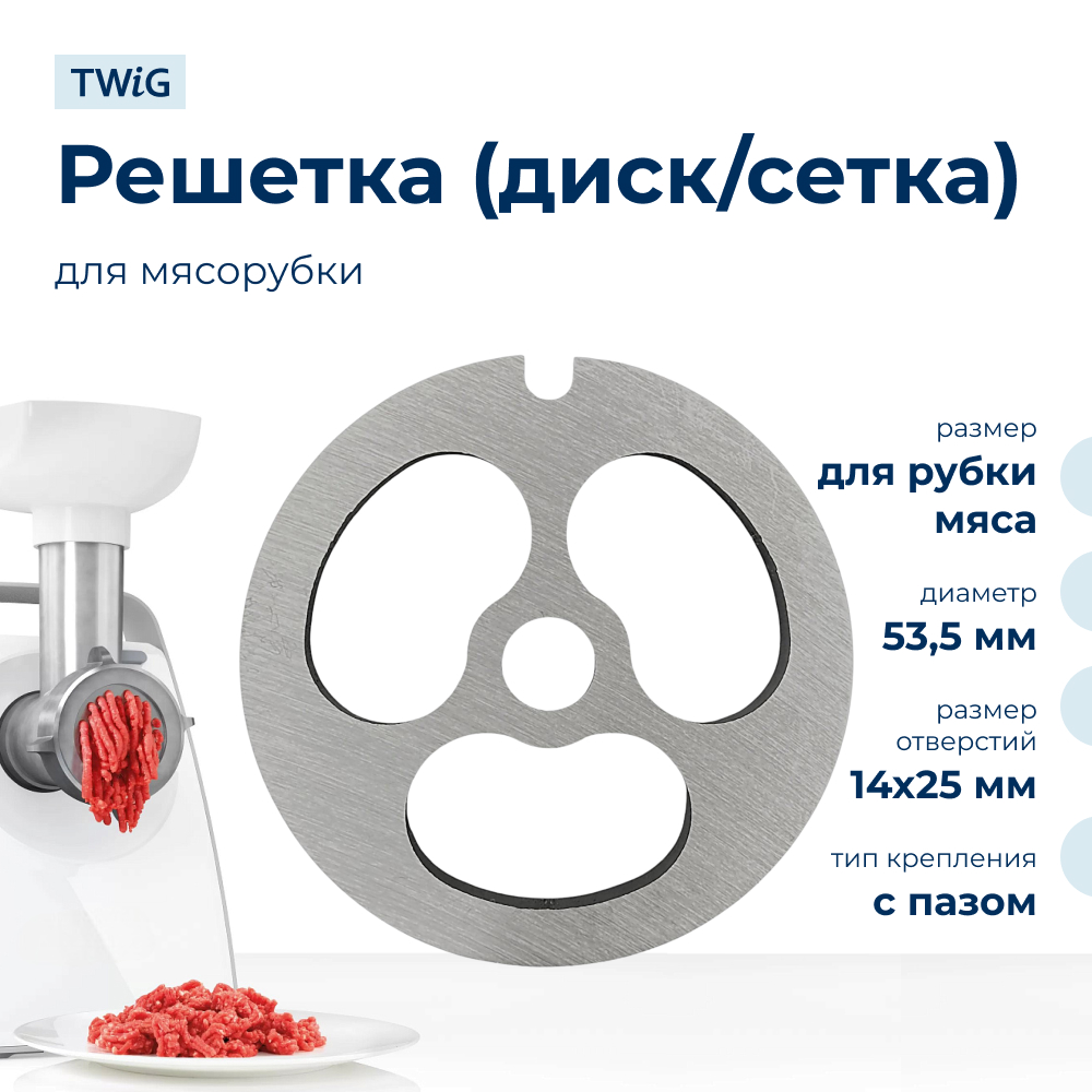 Решетка обеспечивает качественное и равномерное измельчение продуктов. Для поддержания долговечности рекомендуется избегать использования посудомоечной машины, очищать вручную и тщательно вытирать насухо после мытья. Прочная конструкция делает решетку надежным инструментом для приготовления блюд с крупной текстурой мяса.