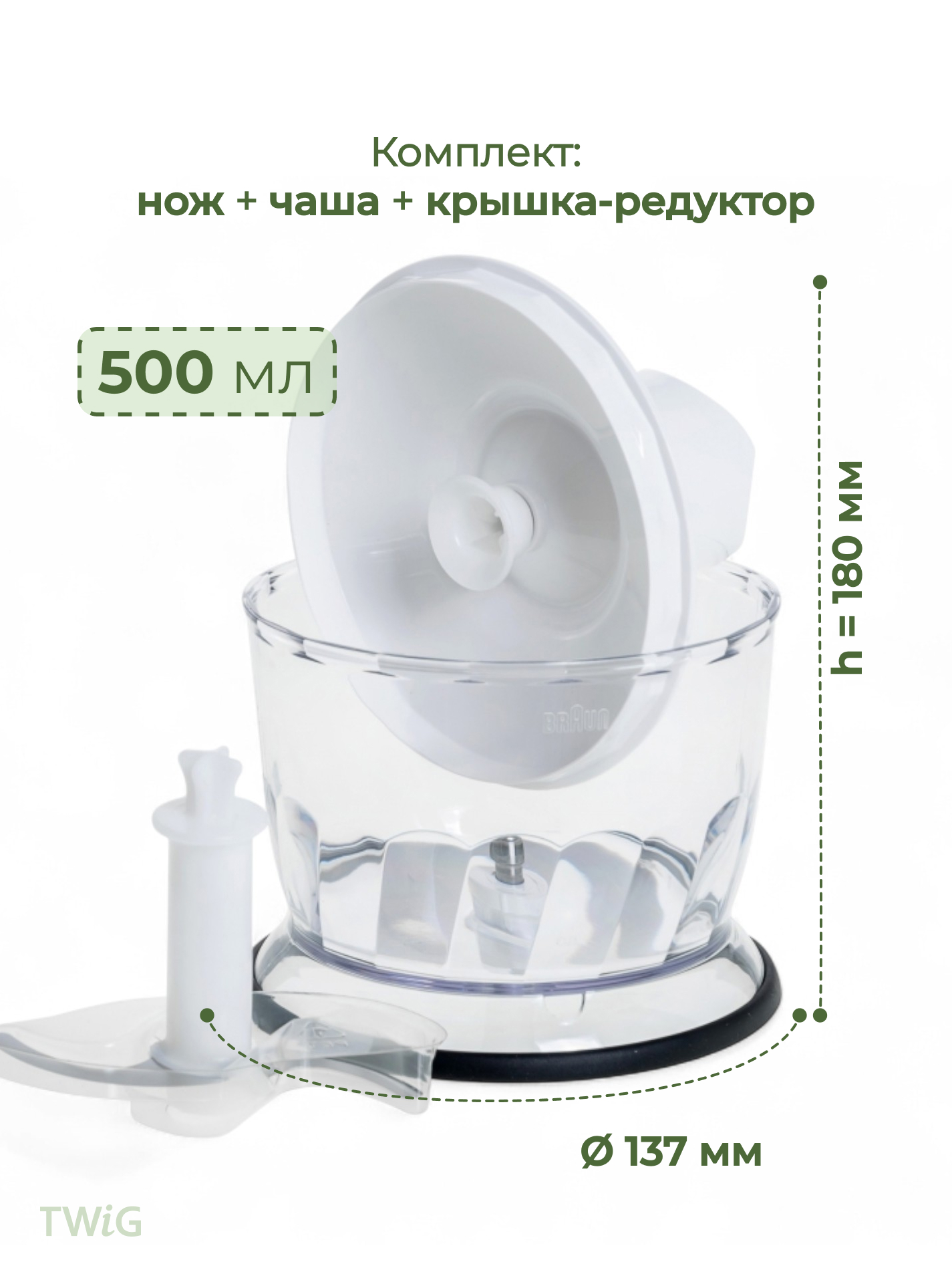Измельчитель для блендера Braun объемом 500 мл (артикул 7050193) предназначен для быстрого измельчения овощей, фруктов, зелени, орехов и других ингредиентов. Идеально подходит для ежедневного использования, помогая легко готовить соусы, пюре, начинку и другие блюда.