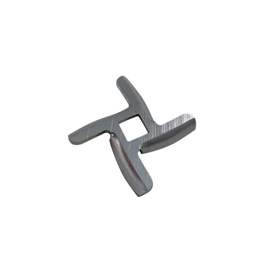 Посадка ножа на шнек выполнена в форме квадрата размером 9 х 9 мм, общий размер ножа составляет 47 мм, толщина — 5 мм. Режущий элемент обеспечивает качественное измельчение мяса для приготовления фарша, гарантируя равномерную текстуру.