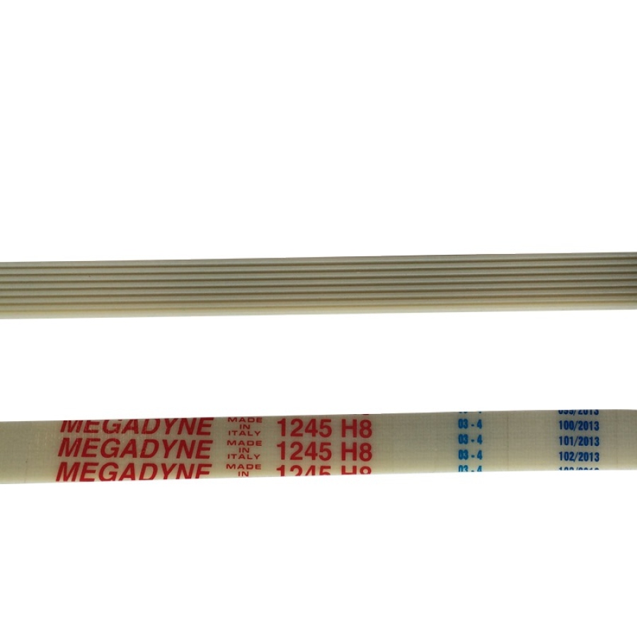Ручейковый ремень стиральной машины 1245 H8, выполненный из полиуретана, хорошо тянется. Деталь имеет светло-желтый цвет и ее легко отличить от резиновой. Полиуретан не обладает достаточной прочностью, такие ремни часто ссыхаются и трескаются, что приводит к внезапной поломке машины. Средний срок службы детали 5-8 лет.