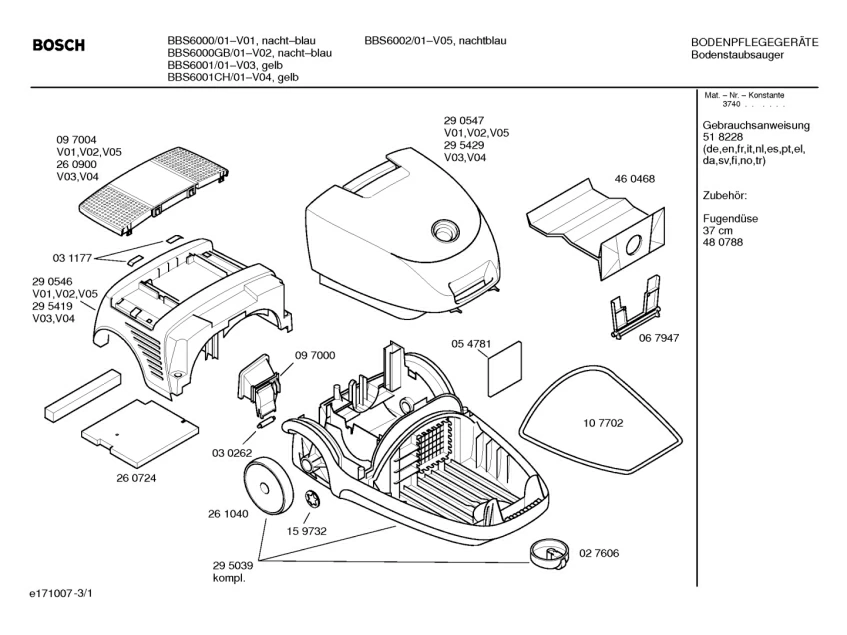 Запчасти для пылесоса Bosch BBS6000GB/01 (58300000100958_aet_000_a_01)
