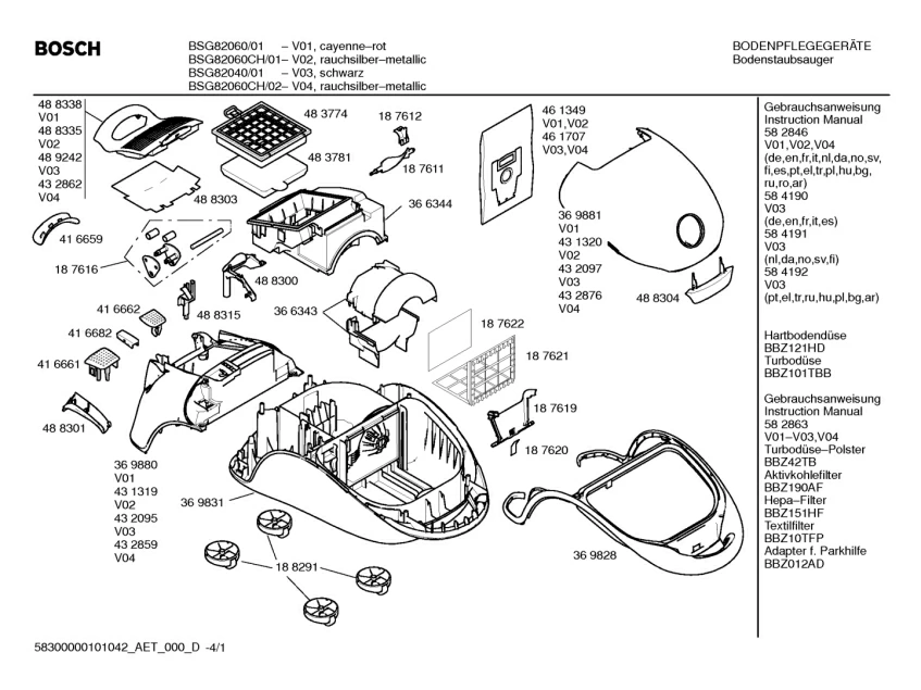 Запчасти для Bosch BSG82040/01 (58300000101042_aet_000_e_01)