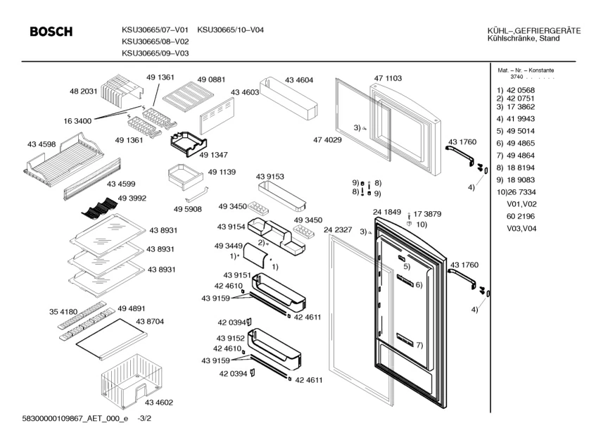 Запчасти для Bosch KSU30665/08 (58300000109867_aet_000_e_02)