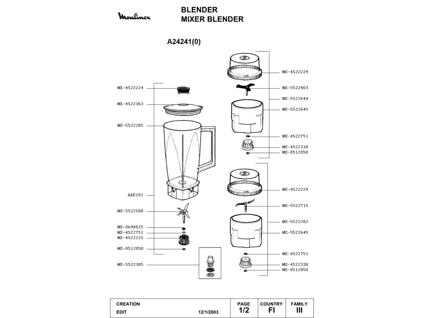 Запчасти для блендера Moulinex A24241(0) (A24241(0)_1)