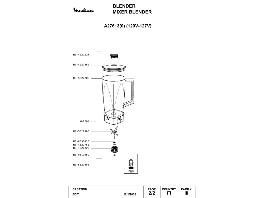 Запчасти для блендера Moulinex A27613(0) (A27613(0)_2)