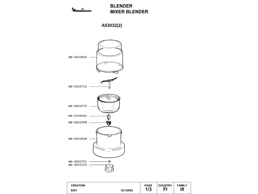 Запчасти для блендера Moulinex A53032(2) (A53032(2)_1)
