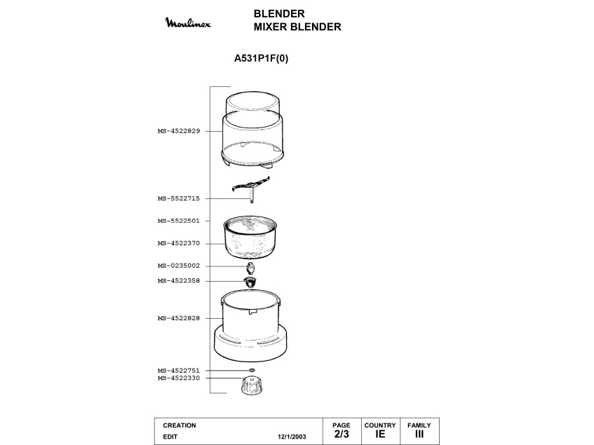 Запчасти для блендера Moulinex A531P1F(0) (A531P1F(0)_2)