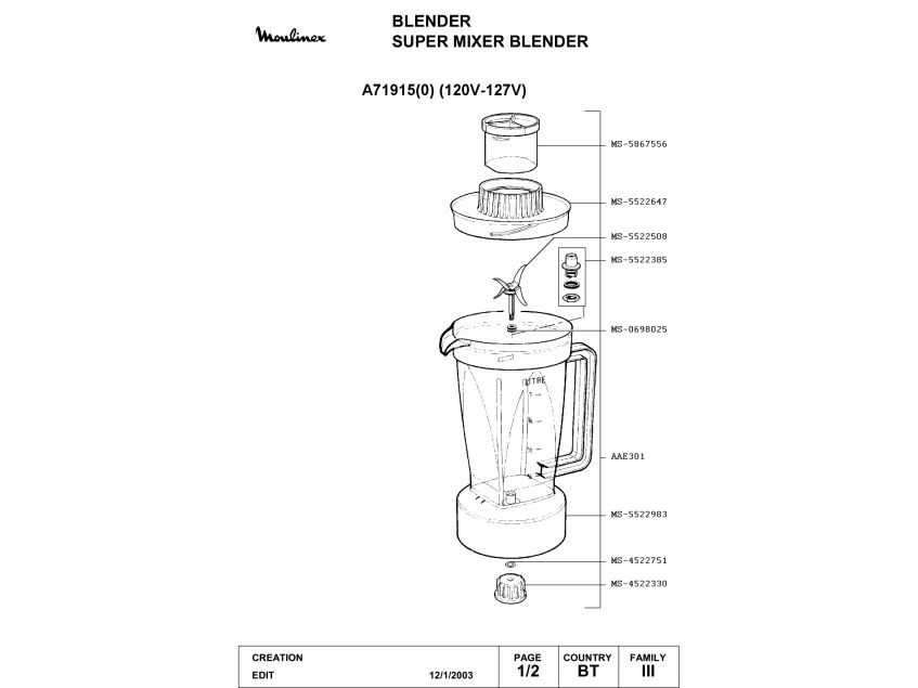Запчасти для блендера Moulinex A71915(0) (A71915(0)_1)