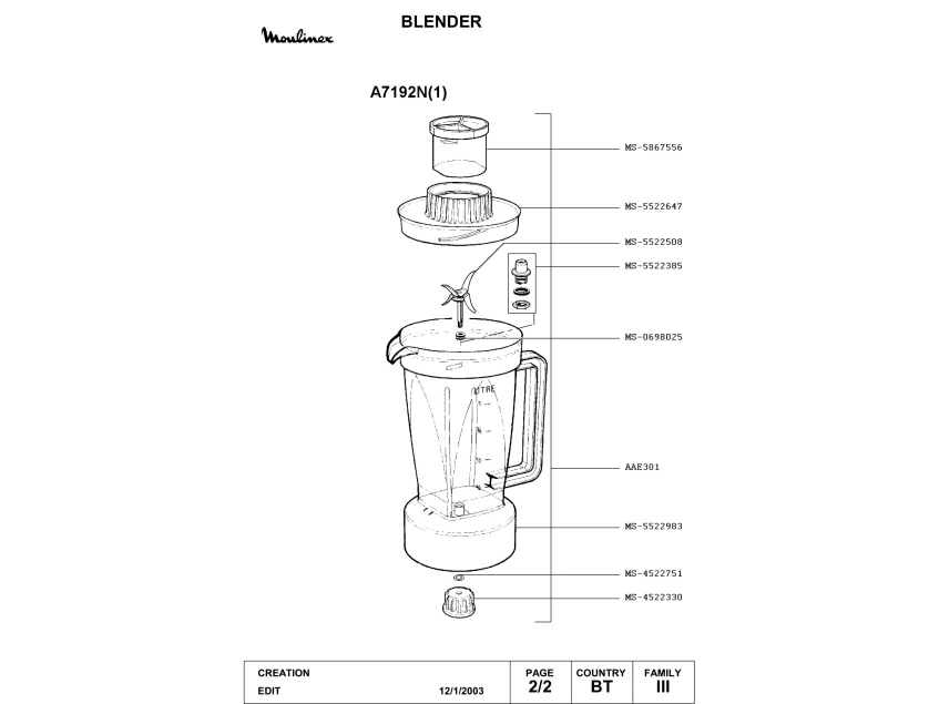 Запчасти для блендера Moulinex A7192N(1) (A7192N(1)_2)