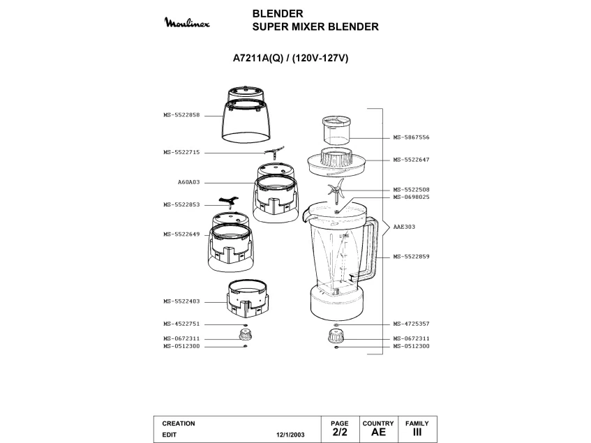 Запчасти для блендера Moulinex A7211A(Q) (A7211A(Q)_2)