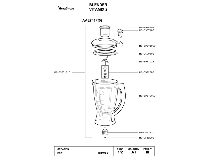 Запчасти для блендера Moulinex AAE741F(0) (AAE741F(0)_1)