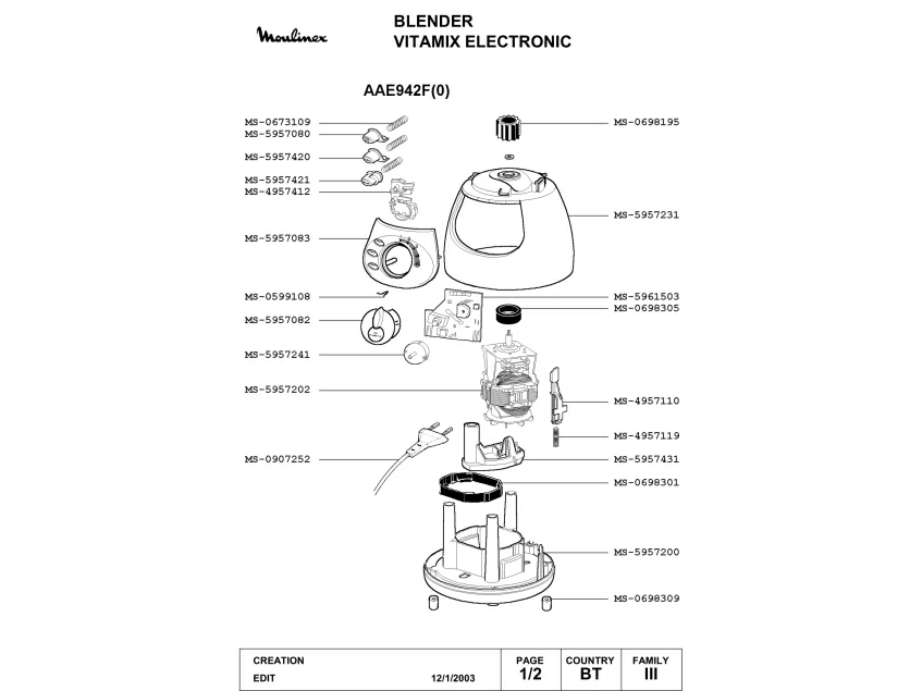 Запчасти для блендера Moulinex AAE942F(0) (AAE942F(0)_1)