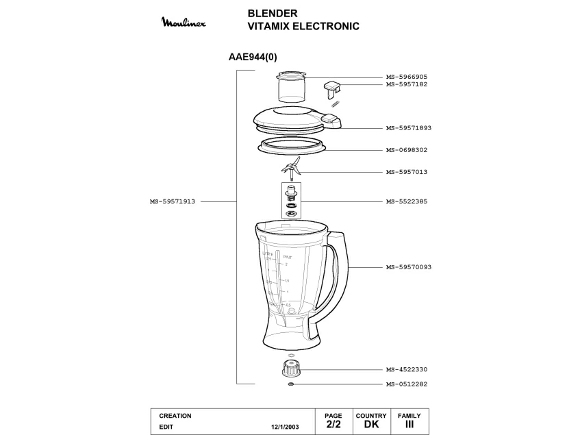 Запчасти для блендера Moulinex AAE944(0) (AAE944(0)_2)