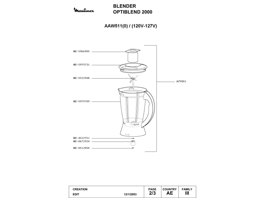 Запчасти для блендера Moulinex AAW511(0) (AAW511(0)_2)