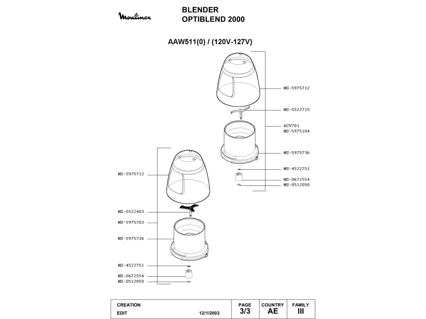Запчасти для блендера Moulinex AAW511(0) (AAW511(0)_3)