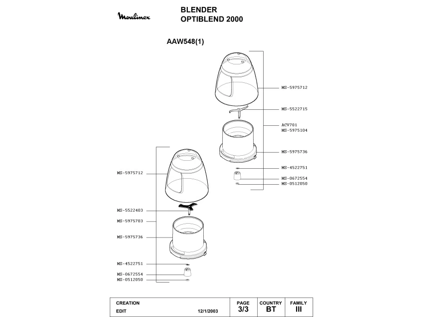 Запчасти для блендера Moulinex AAW548(1) (AAW548(1)_3)