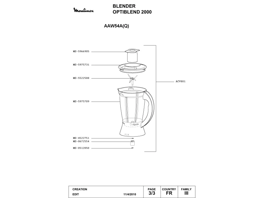 Запчасти для блендера Moulinex AAW54A(Q) (AAW54A(Q)_3)