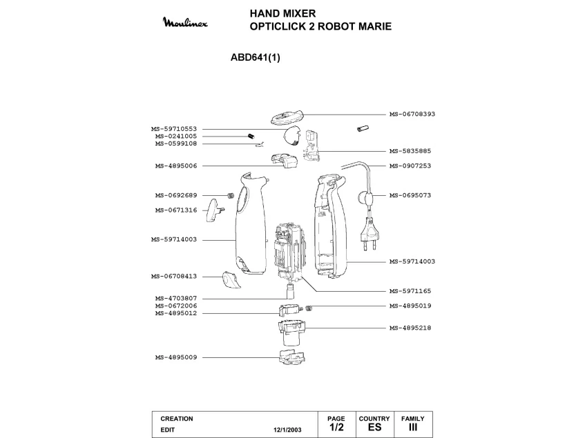 Запчасти для блендера Moulinex ABD641(1) (ABD641(1)_1)