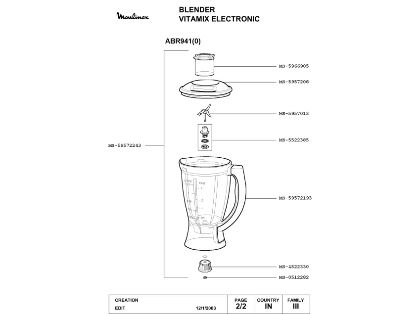 Запчасти для блендера Moulinex ABR941(0) (ABR941(0)_2)