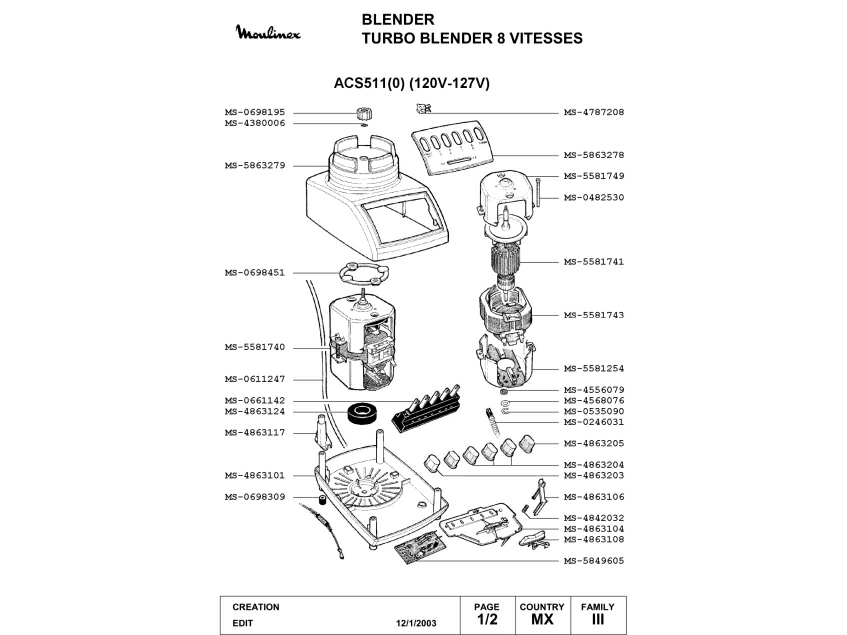 Запчасти для блендера Moulinex ACS511(0) (ACS511(0)_1)