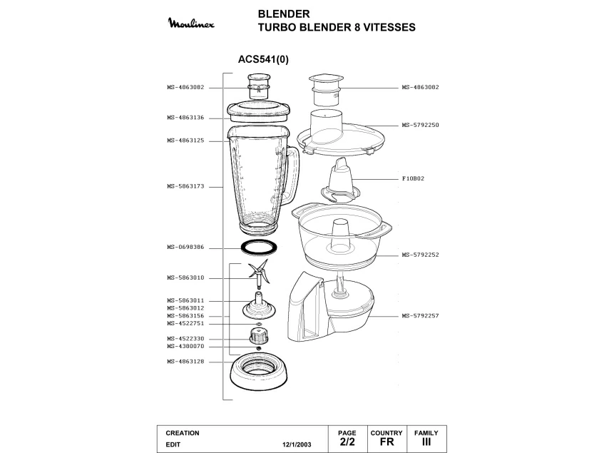 Запчасти для блендера Moulinex ACS541(0) (ACS541(0)_2)