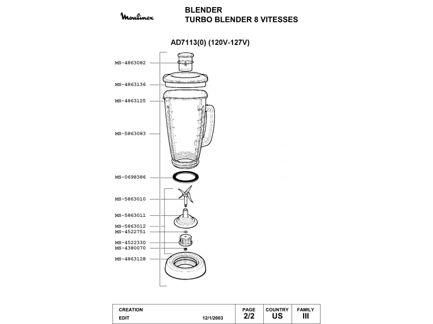 Запчасти для блендера Moulinex AD7113(0) (AD7113(0)_2)