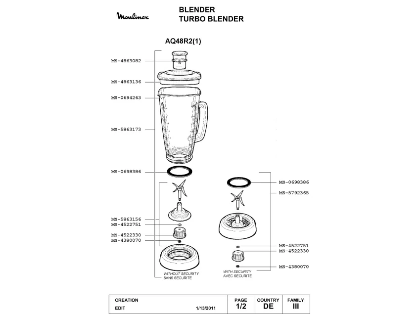 Запчасти для блендера Moulinex AQ48R2(1) (AQ48R2(1)_1)