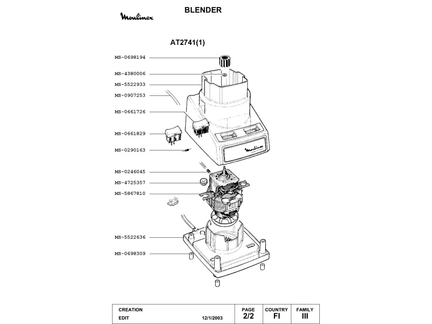 Запчасти для блендера Moulinex AT2741(1) (AT2741(1)_2)