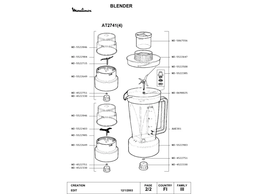 Запчасти для блендера Moulinex AT2741(4) (AT2741(4)_2)