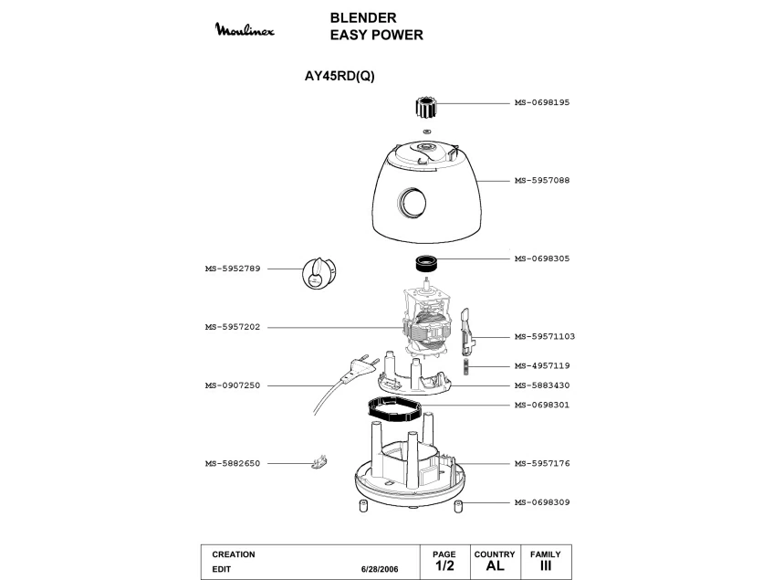 Запчасти для блендера Moulinex AY45RD(Q) (AY45RD(Q)_1)