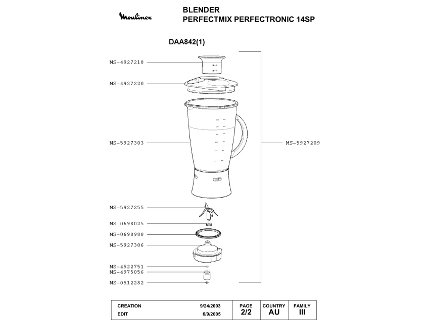 Запчасти для блендера Moulinex DAA842(1) (DAA842(1)_2)
