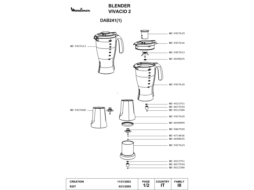 Запчасти для блендера Moulinex DAB241(1) (DAB241(1)_1)