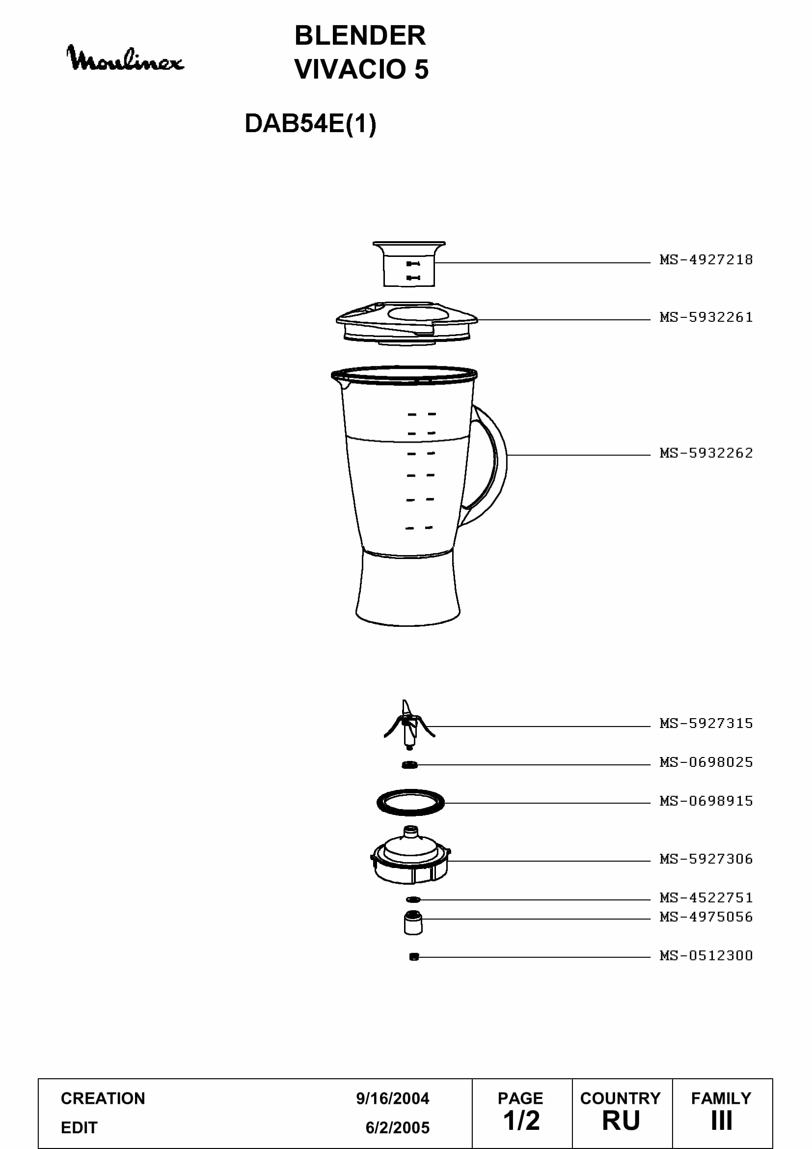 Запчасти для блендера Moulinex DAB54E(1) (DAB54E(1)_1)