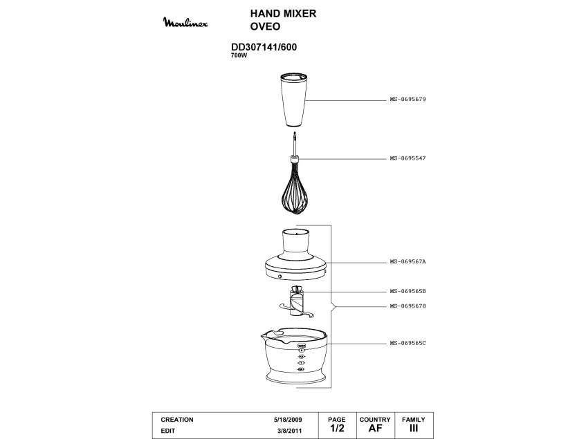 Запчасти для блендера Moulinex DD307141/600 (DD307141-600_1)