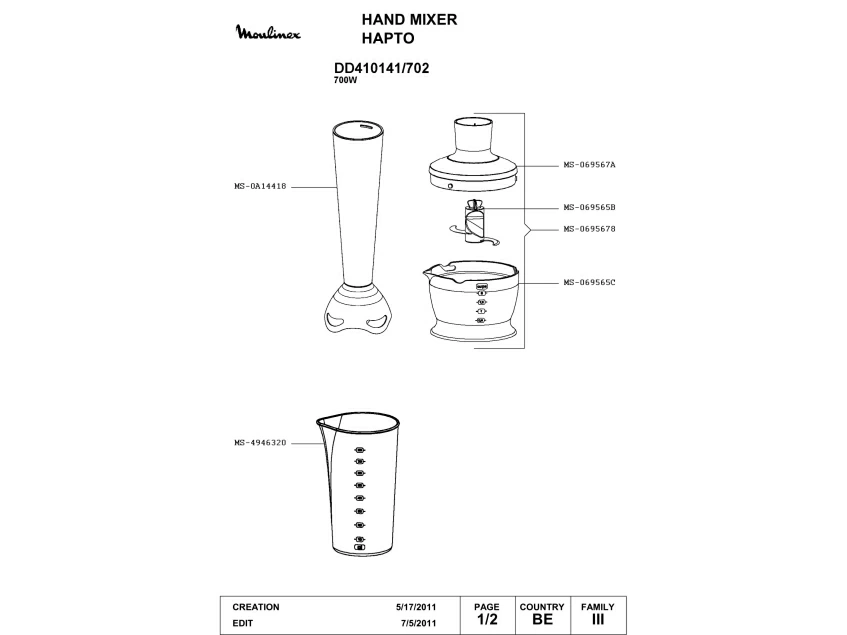 Запчасти для блендера Moulinex DD410141/702 (DD410141-702_1)