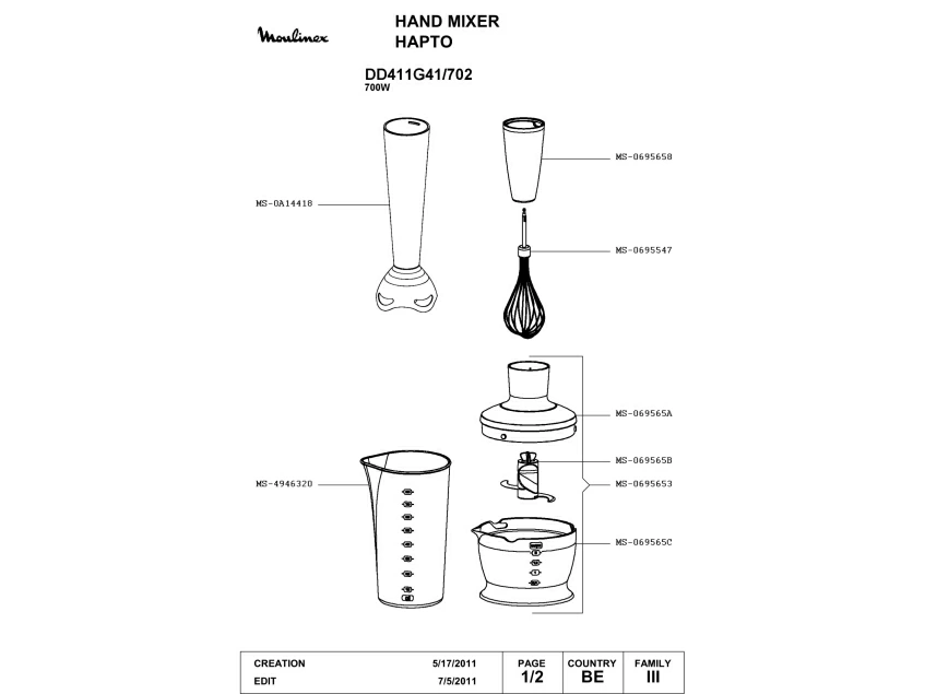 Запчасти для блендера Moulinex DD411G41/702 (DD411G41-702_1)