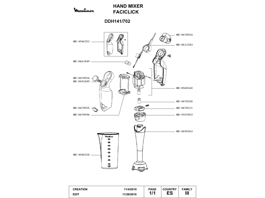 Запчасти для блендера Moulinex DDH141/702 (DDH141-702_1)