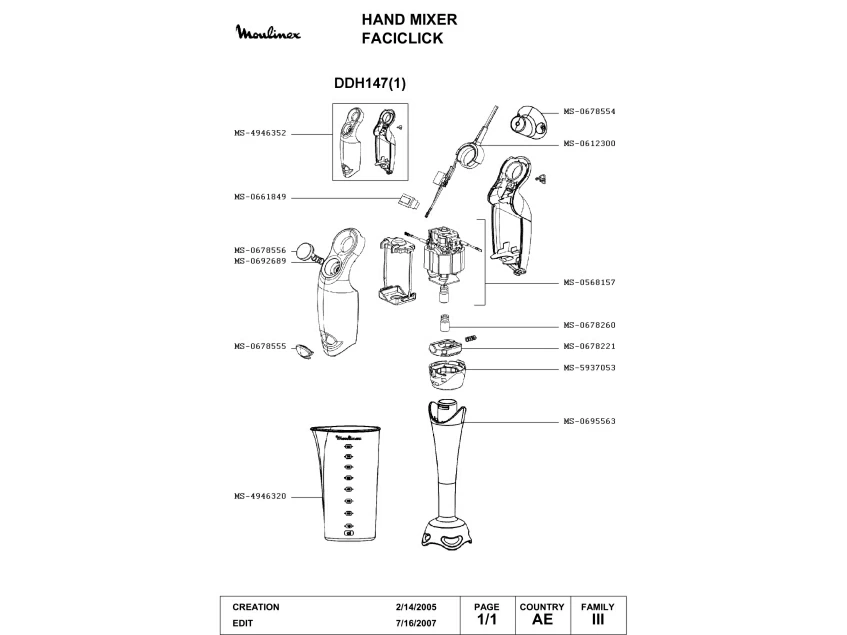 Запчасти для блендера Moulinex DDH147(1) (DDH147(1)_1)