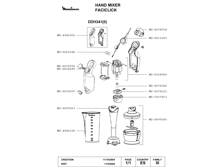 Запчасти для блендера Moulinex DDH341(0) (DDH341(0)_1)