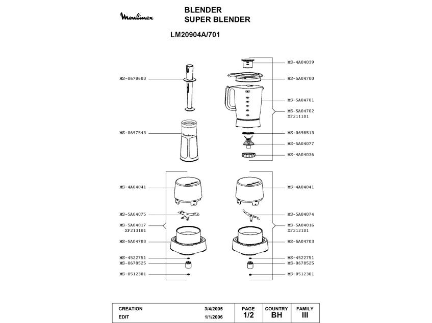 Запчасти для блендера Moulinex LM20904A/701 (LM20904A-701_1)