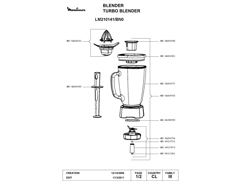 Запчасти для блендера Moulinex LM210141/BN0 (LM210141-BN0_1)