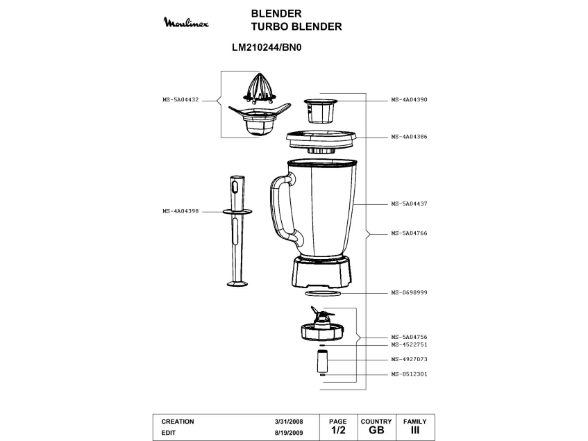 Запчасти для блендера Moulinex LM210244/BN0 (LM210244-BN0_1)
