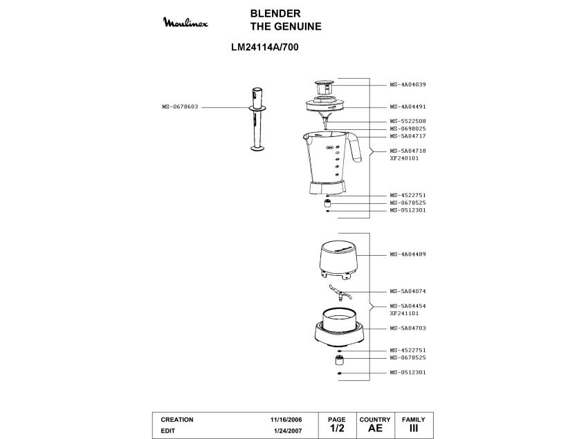 Запчасти для блендера Moulinex LM24114A/700 (LM24114A-700_1)