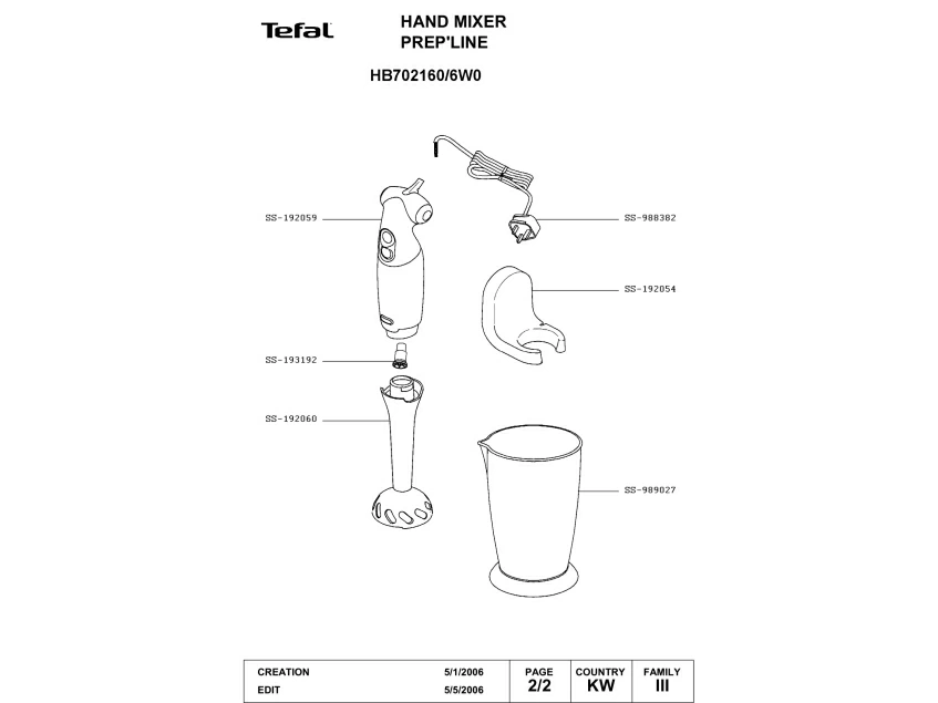 Запчасти для блендера Tefal HB702160/6W0 (HB702160-6W0-1)