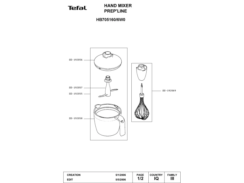 Запчасти для блендера Tefal HB705160/6W0 (HB705160-6W0-2)