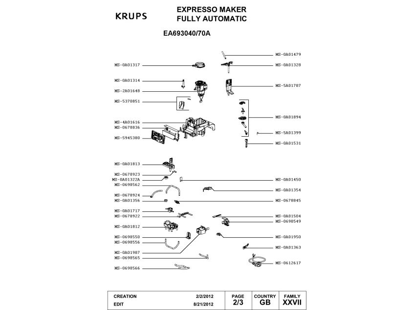 Запчасти для кофемашины Krups EA693040/70A (EA693040-70A-2)