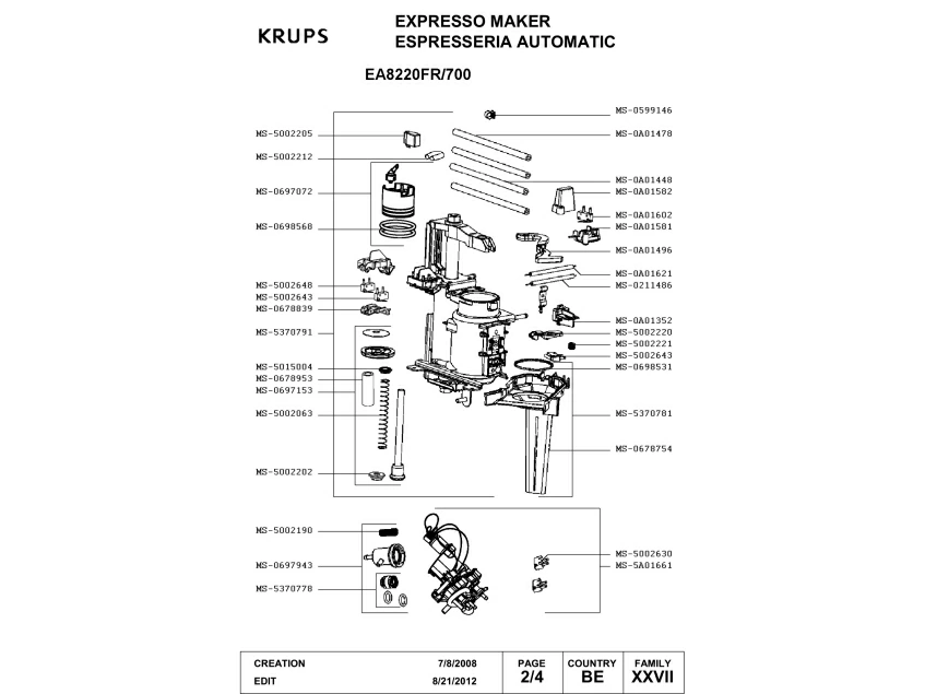 Запчасти для Krups EA8220FR/700 (EA8220FR-700-1)