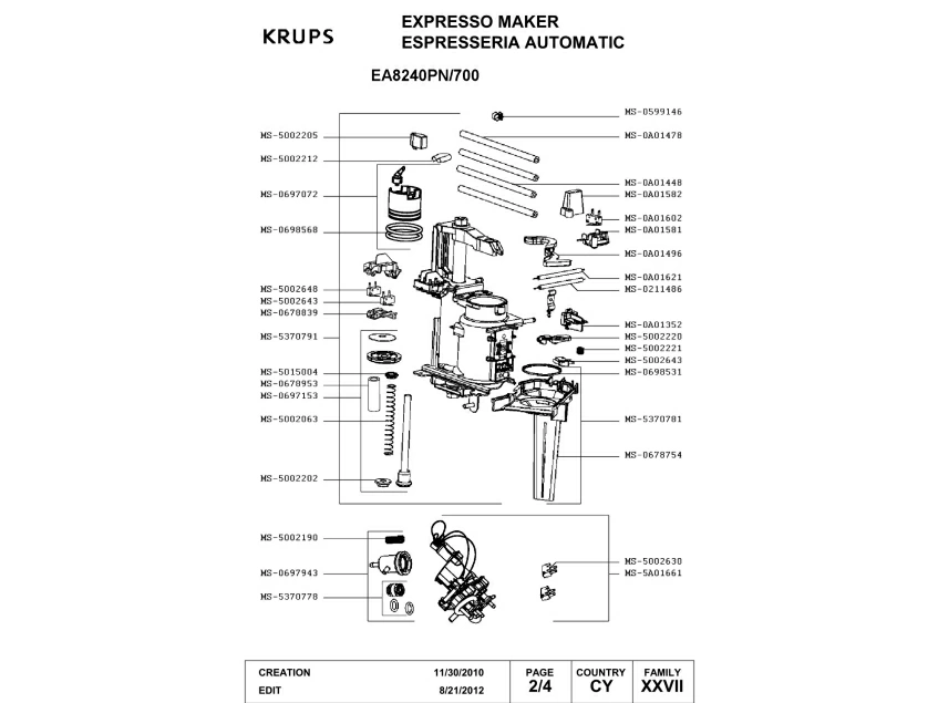 Запчасти для кофемашины Krups EA8240PN/700 (EA8240PN-700-4)