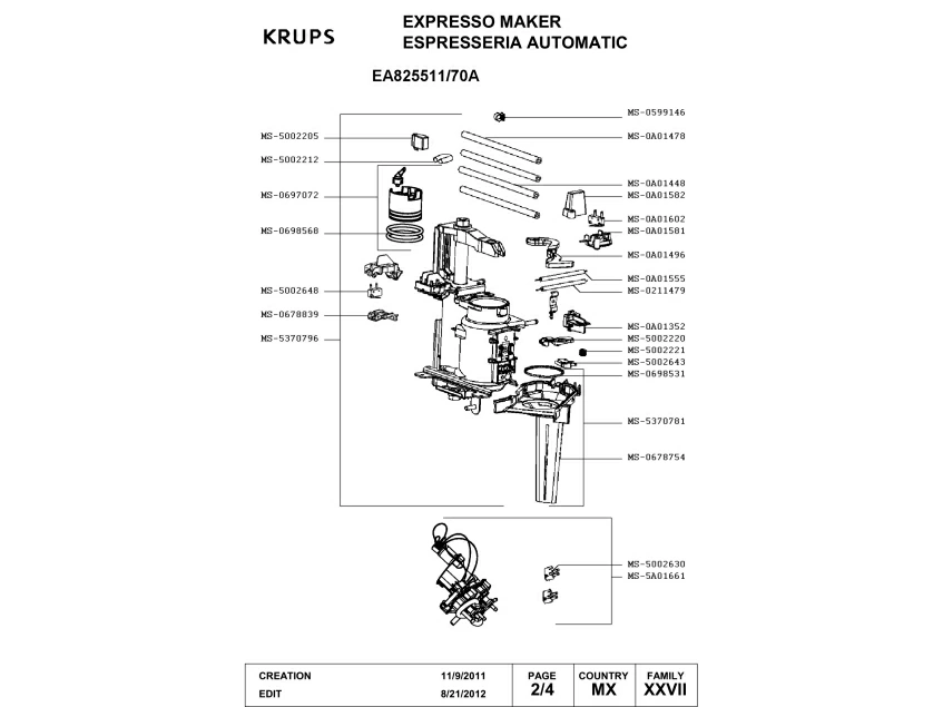 Запчасти для кофемашины Krups EA825511/70A (EA825511-70A-1)