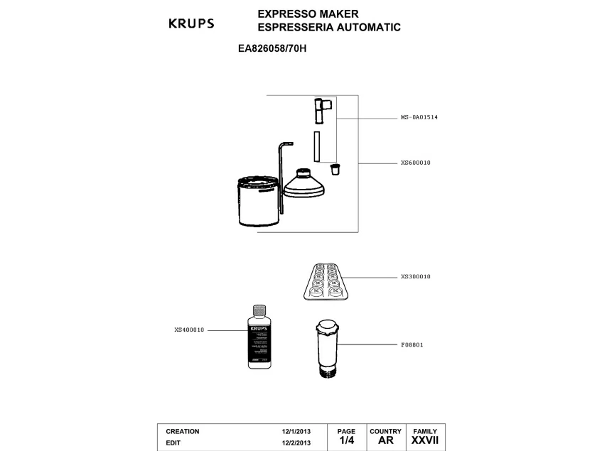 Запчасти для кофемашины Krups EA826058/70H (EA826058-70H-3)